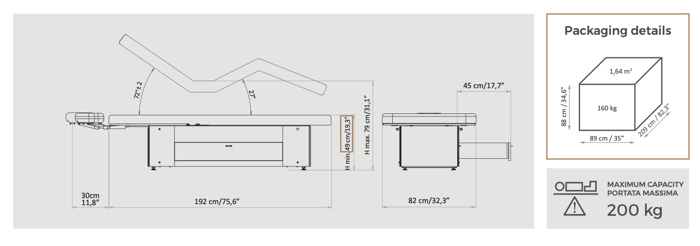 Grâce à sa hauteur minimale de 49 cm, le modèle Portofino garantit un confort maximal pour le client et le professionnel.
