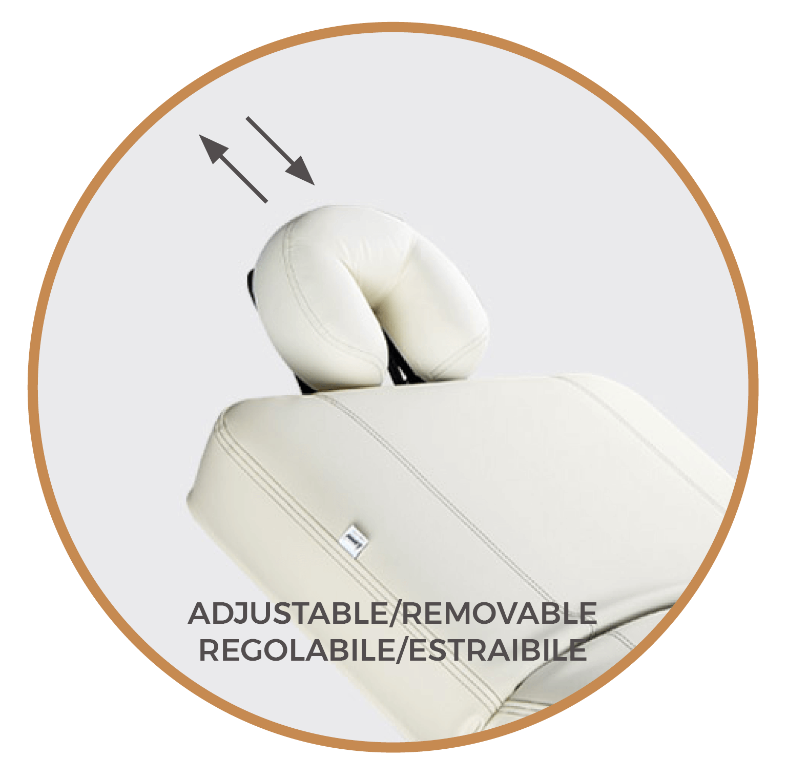 Il est équipé d’une tête fer à cheval, d’une boîte à gants intégrée à la base et de trois réglages indépendants : réglage de la hauteur, du dossier et du repose-jambes.