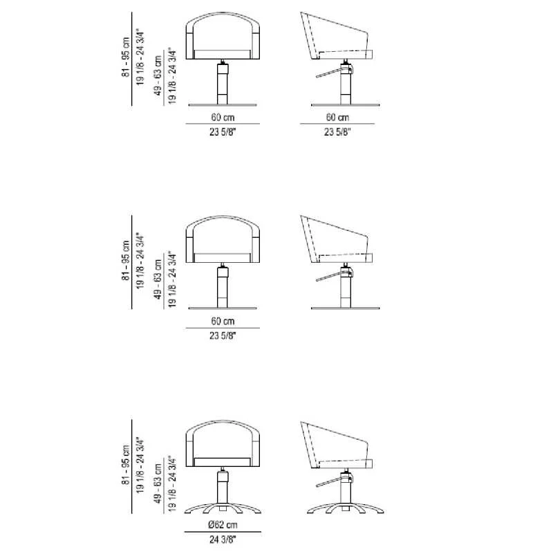 Fauteuil en mousse injectée monté sur une base ronde en acier inoxydable avec pivotement à 360° et pompe hydraulique verrouillable.