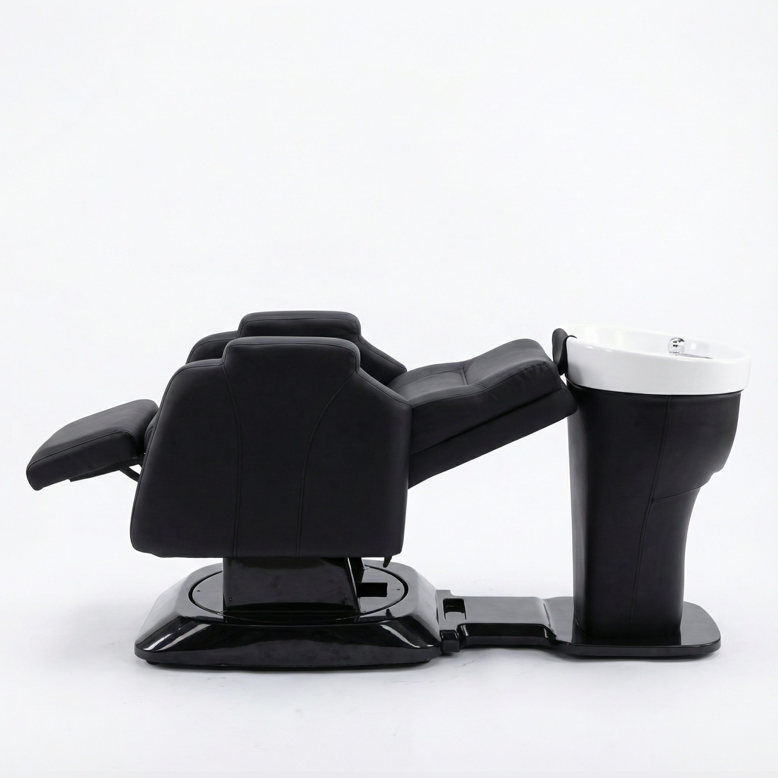 Le dossier inclinable et et le repose jambes permettent d’allonger presque entièrement le client, recréant la sensation d’un véritable fauteuil de relaxation