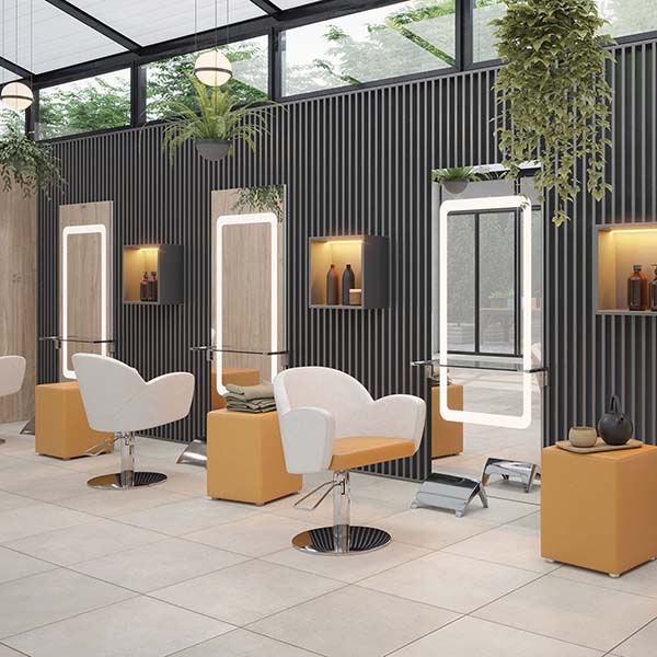 Le miroir de coiffure est le cœur du salon, là où la magie prend vie. Il mérite donc une attention particulière lors du choix, car il fait partie intégrante de l’environnement et contribue ainsi à l’esthétique finale. C’est également un élément fondamental pour les clients, car il leur permet de se regarder tout au long du traitement et de maintenir un contact visuel avec le coiffeur. De plus, il vous aidera à proposer vos produits lors des différents soins capillaires.