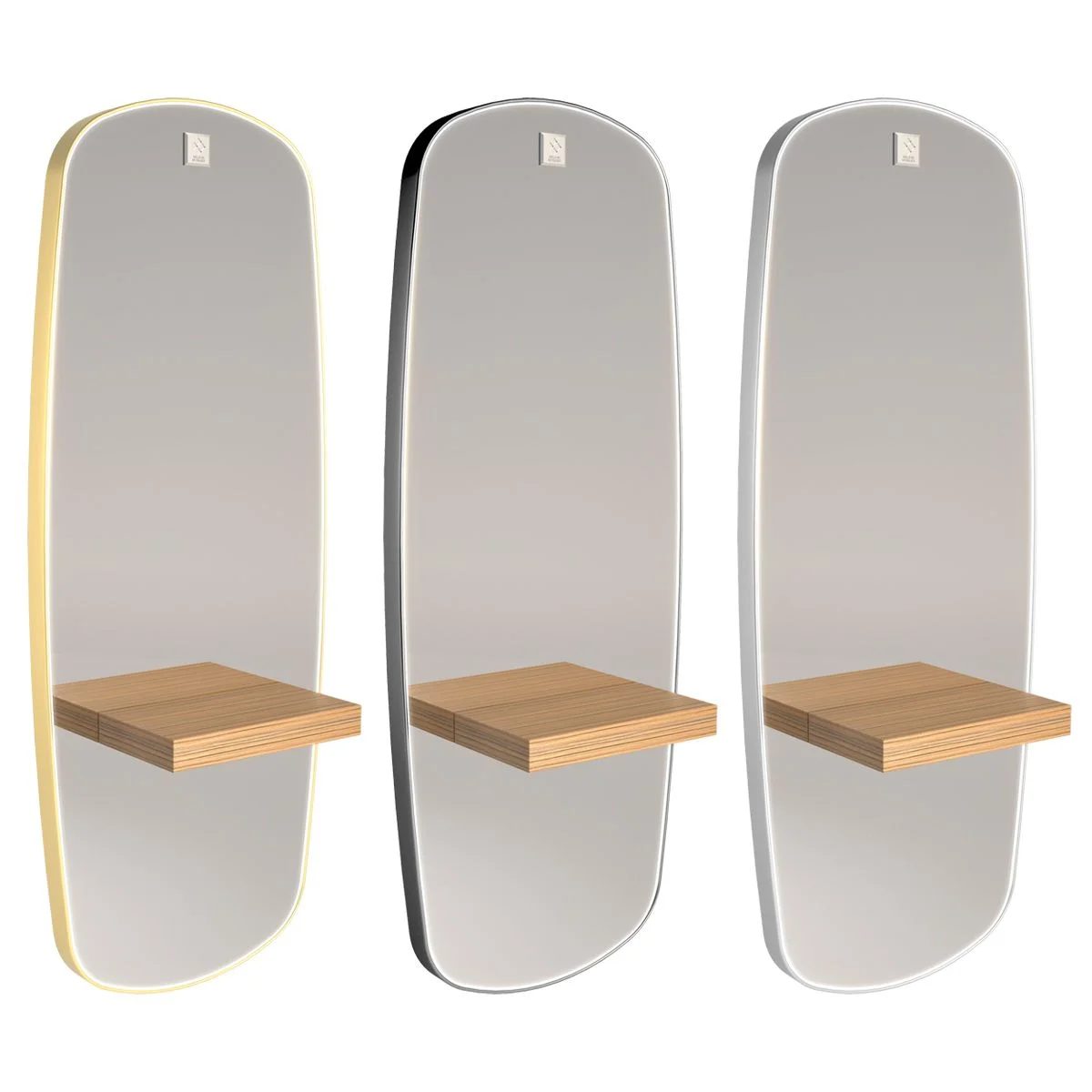 La coiffeuse Ovalis revient en version murale, avec un insert LED entourant le cadre pour mettre en valeur sa forme et offrir un espace de coiffage fonctionnel et raffiné. Disponible en or, elle se marie parfaitement avec la base de fauteuil HRO en finition dorée.
