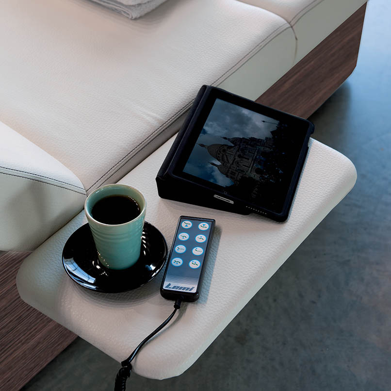 Finitions raffinées etréglage électrique du dossier et de la jambe via un panneau à bouton-poussoir pratique.
