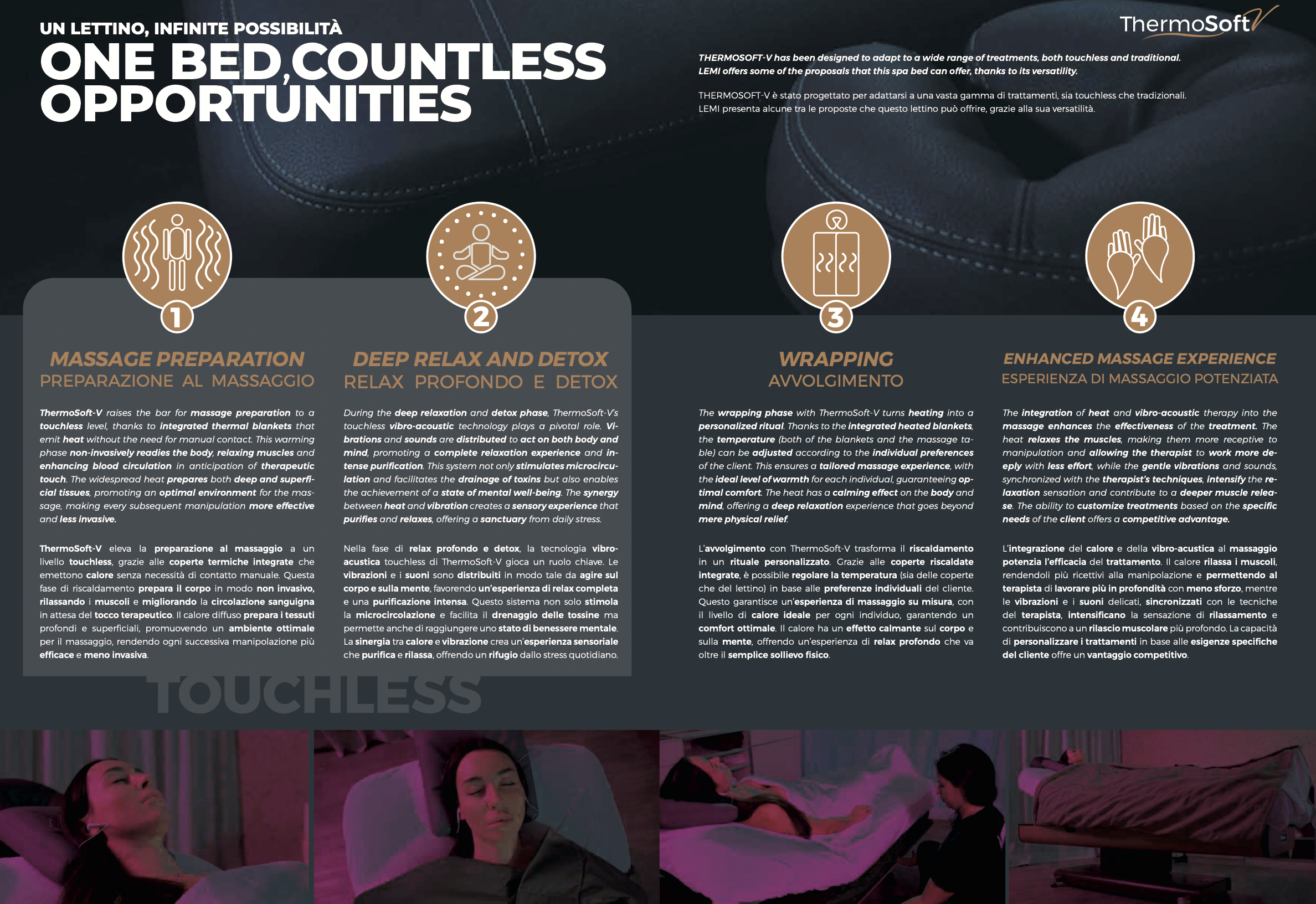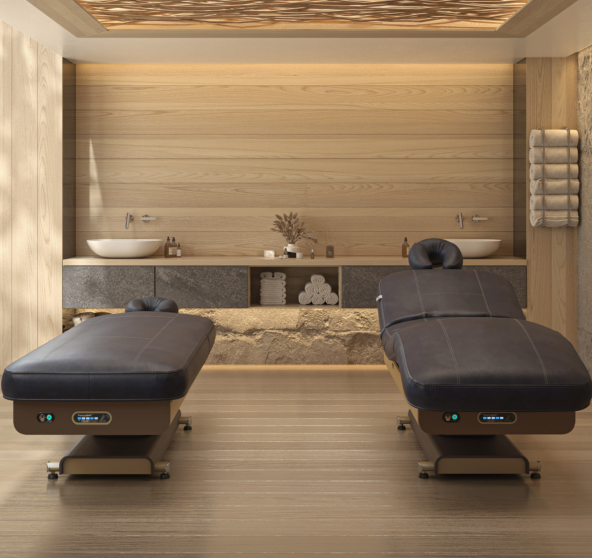 Des couvertures chauffantes intégrées au sommier du lit offrent une thérapie thermale qui permet d’éliminer les toxines du corps, de nettoyer la peau et de booster le système immunitaire.