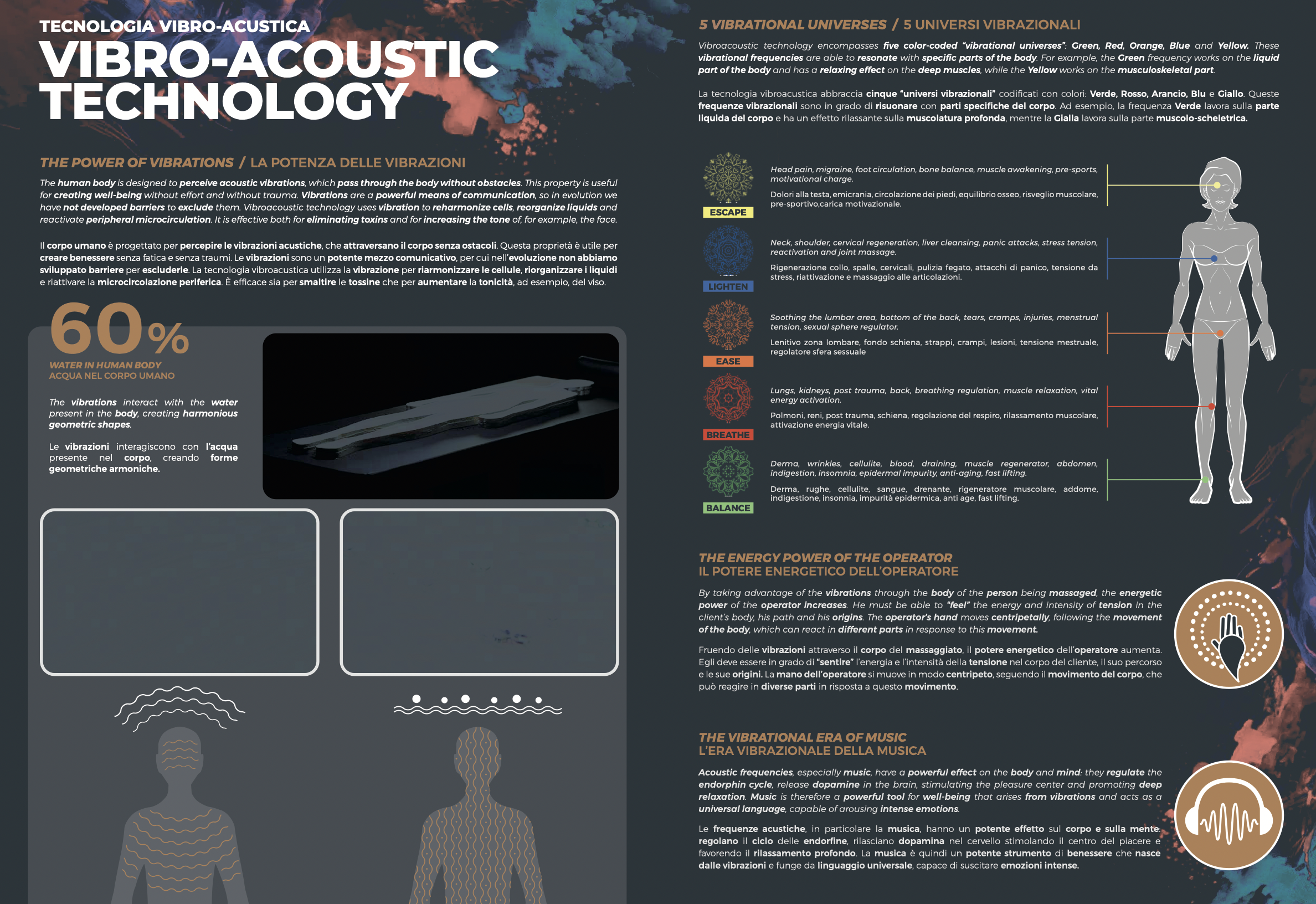 Sa technologie vibro-acoustique de pointe intégrée au matelas Memory Foam, combinaison parfaite de résonance et de transmission acoustique, transforme chaque vibration en un toucher curatif qui résonne au plus profond des cellules.