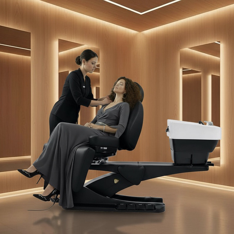 Un fauteuil de coiffure multimoteur conçu pour les coiffeurs et esthéticiennes soucieux d’innovation.